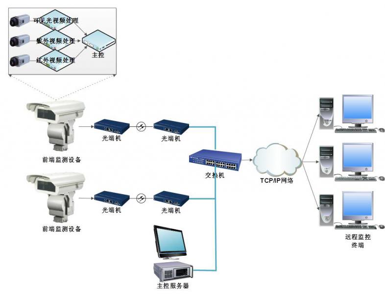 系統(tǒng)可實現(xiàn)對紫外、紅外和可見光圖像的遠程傳輸和監(jiān)控, 超溫、電暈超標報警提示。通過遠程對攝像機控制,預(yù)制定位,遠程切換,自動巡視等。能夠支持多場所的中央監(jiān)控,不受地理限制,多個用戶可同時監(jiān)控同一前端,發(fā)生異常自動抓拍,同時自動啟動錄像機,具有很好的兼容性及可擴展性。提高運行人員對設(shè)備缺陷的識別能力和預(yù)見性。